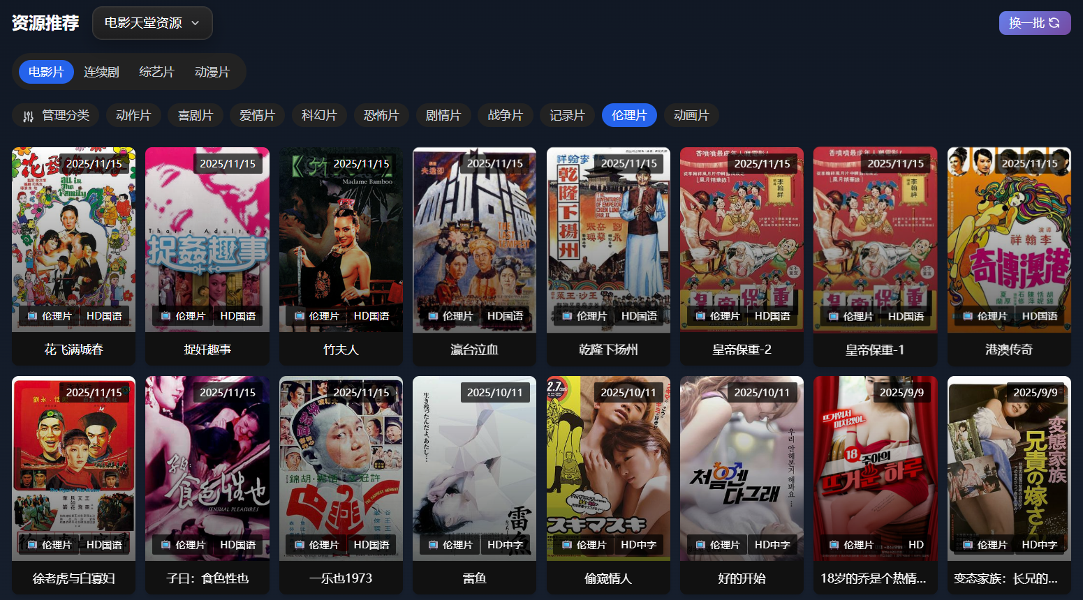 该商品为MoonTV的视频源链接,用户购买完成后在后填入视频源前端即可享受无尽的免费视频,本商品共计五个视频源为: